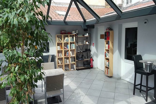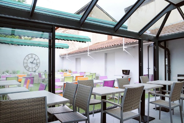 Colorée et brumisée, notre cour est un véritable lieu de détente en plein coeur du centre ville. Possibilité de Privatisation événementielle